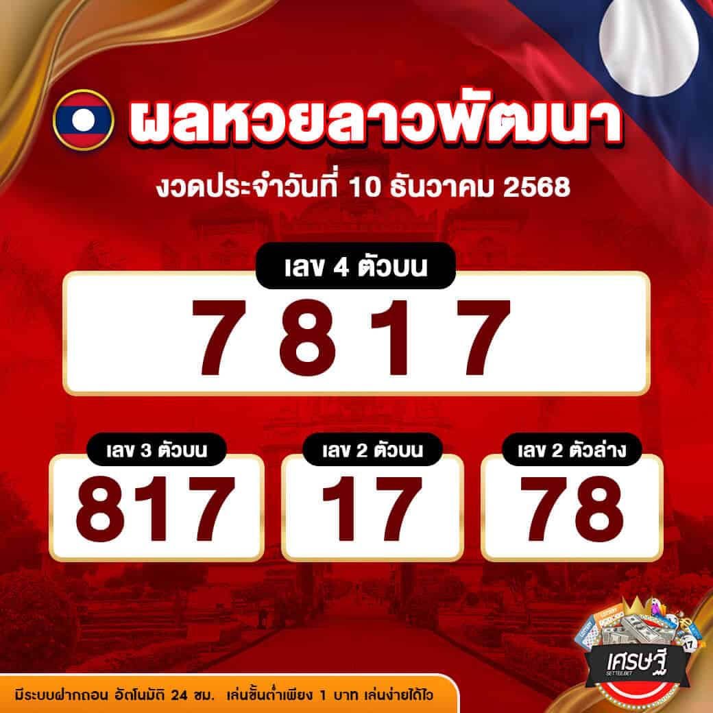 ผลหวยลาวพัฒนา งวดวันที่ 10 ธันวาคม 2568