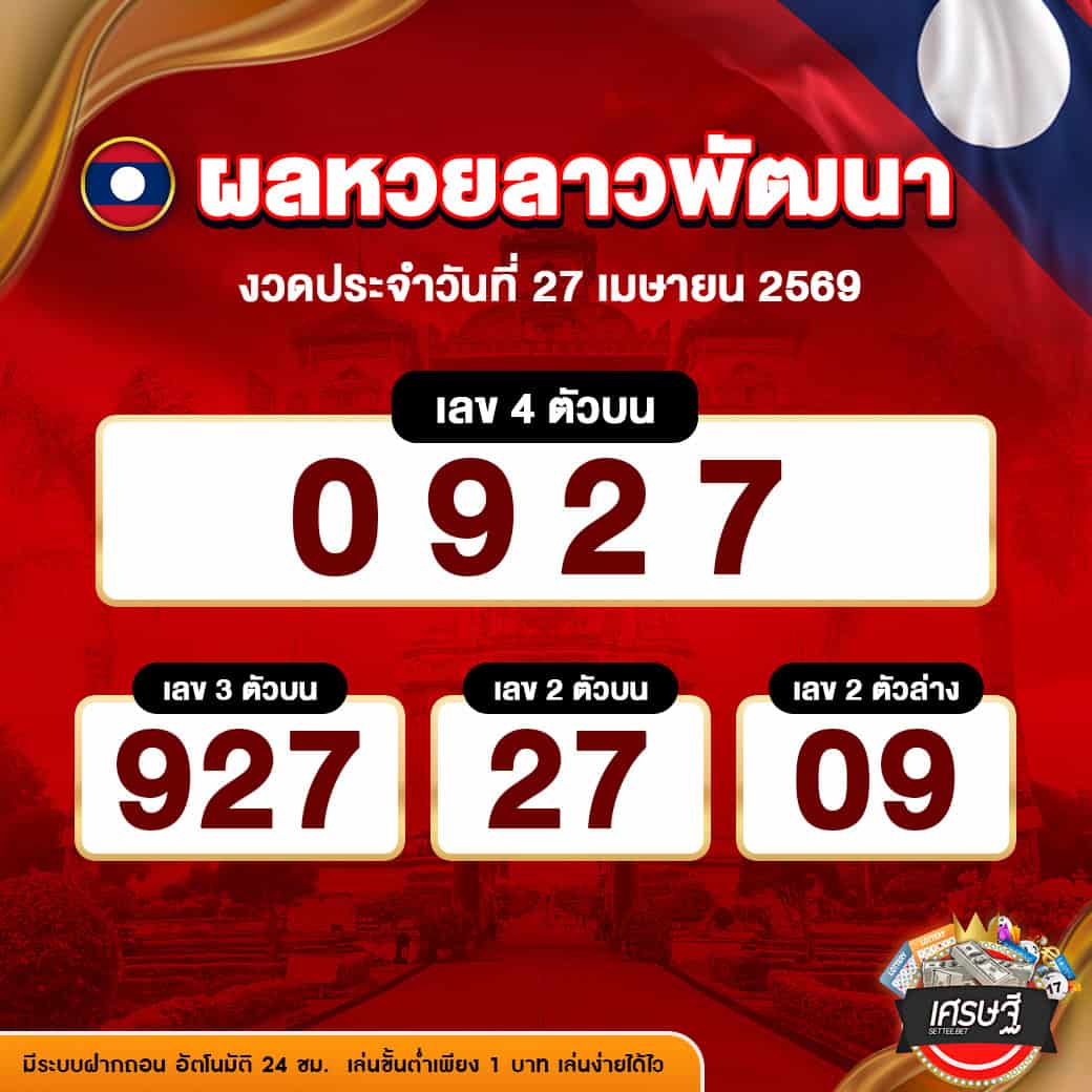 ผลหวยลาว พัฒนา งวดวันที่ 27/4/2569