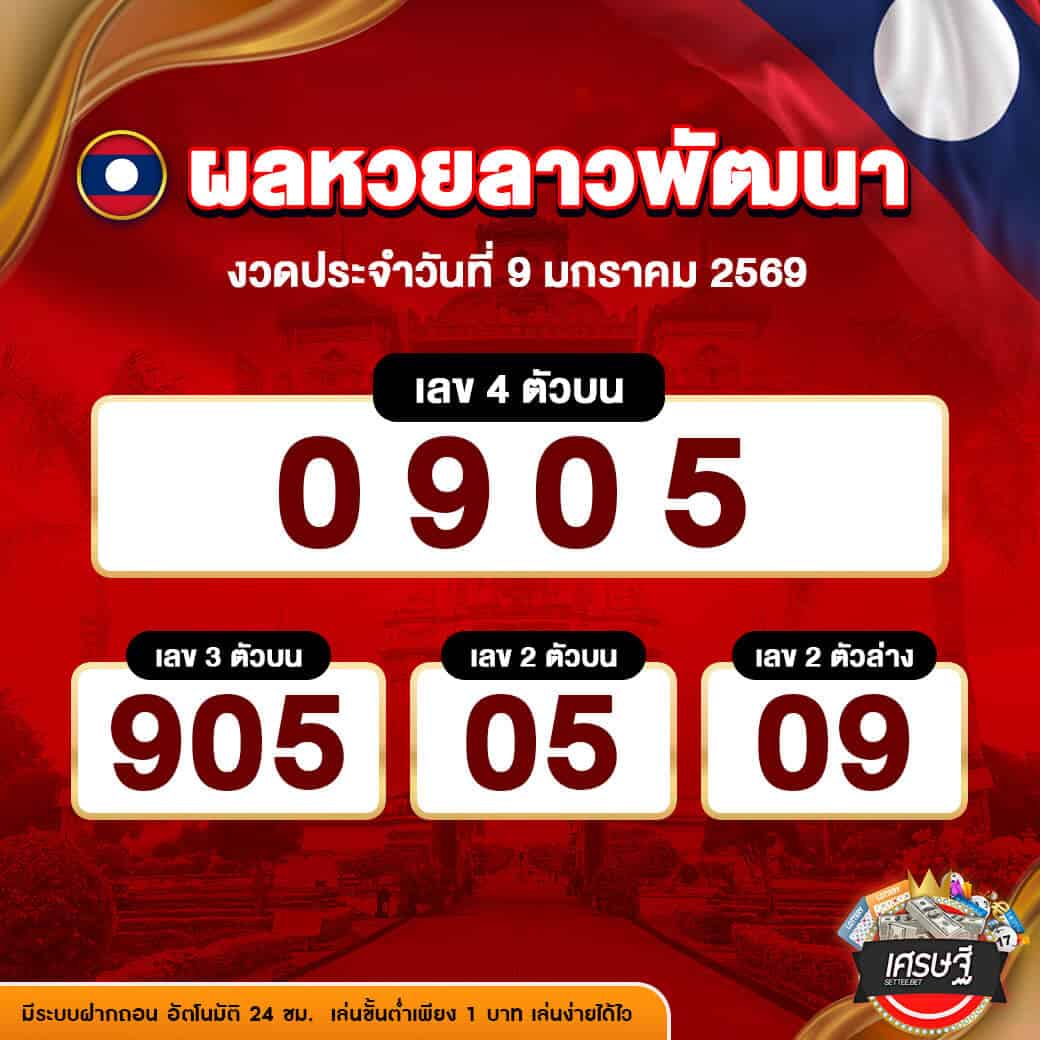 ผลหวยลาวพัฒนา งวดวันที่ 9 มกราคม 2569