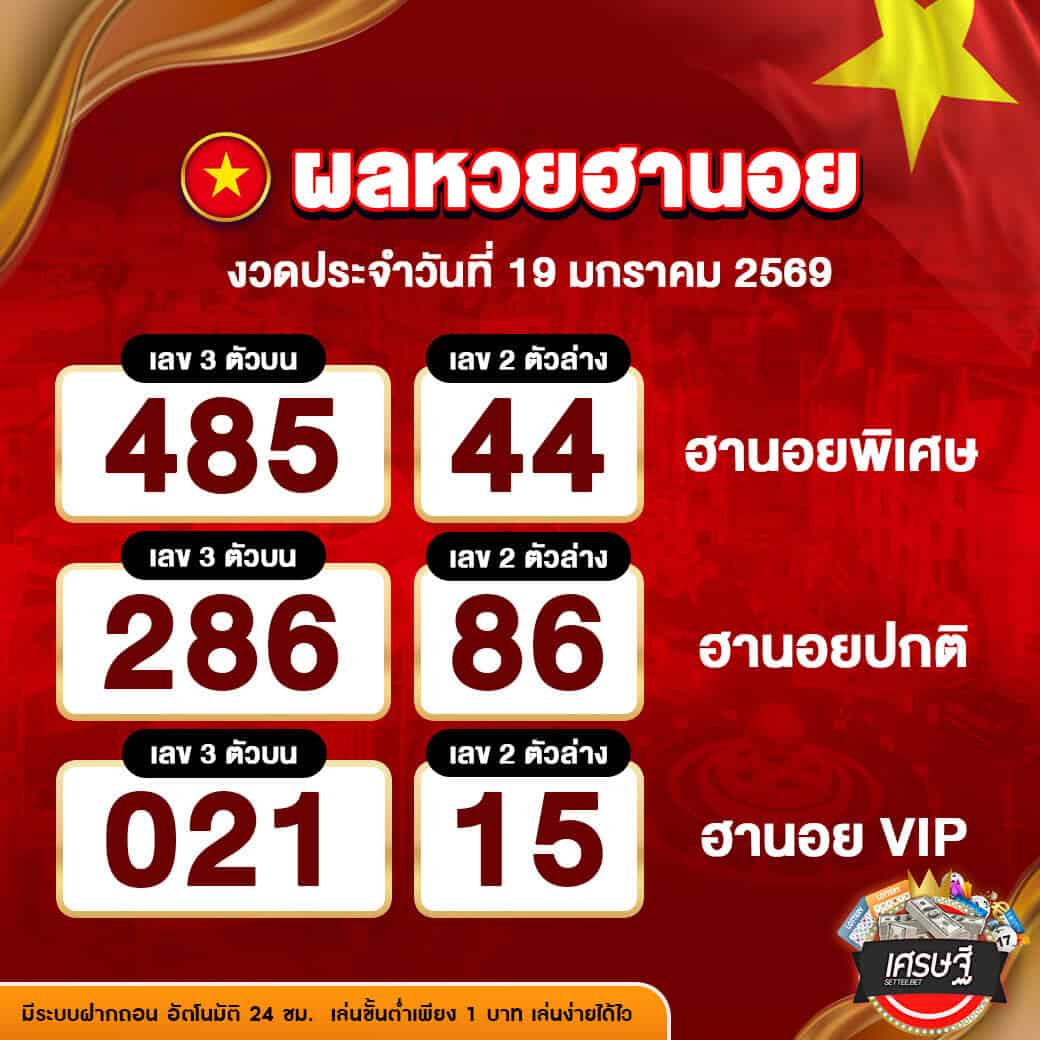 ผลหวยฮานอย งวดวันที่ 19 มกราคม 2569