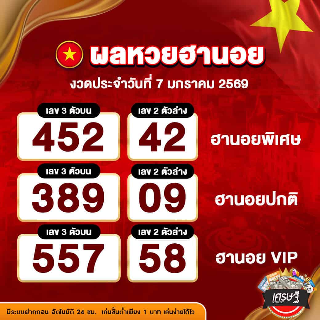 ผลหวยฮานอย งวดวันที่ 7 มกราคม 2569